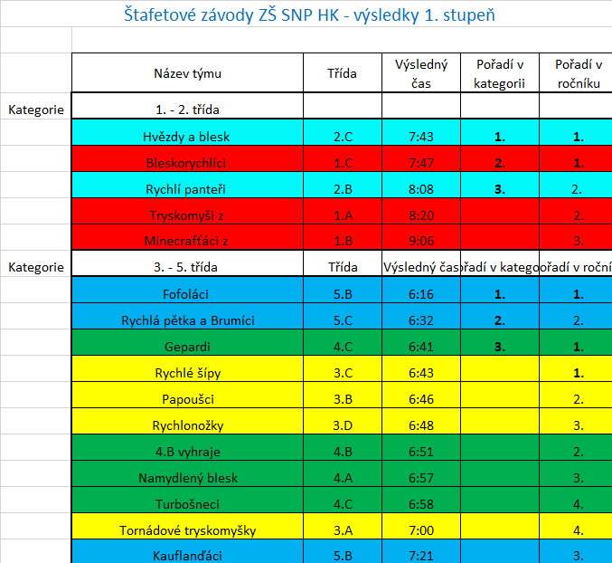 Výsledky sportovního odpoledne pro rodiče